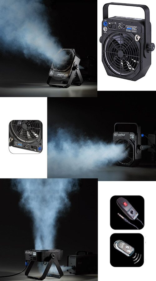 L'AF-3 est un ventilateur de scène polyvalent compact doté de nombreuses options de contrôle, d'un contrôle de sortie linéaire, d'une faible consommation d'énergie, de directions de soufflage réglables et d'un boîtier en métal durable. Outre le contrôle DMX intégré et le bouton manuel, les contrôleurs câblés et sans fil sont proposés en option pour répondre à divers besoins. La consommation totale est simplement de 120W. Le support joint permet diverses directions de sortie dans les 90 degrés tout en étant pendu ou posé au sol. La conception solide et pratique facilite le transport et le stockage.